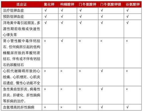 我们比较熟悉的钾盐有氯化钾、柠檬酸钾、谷氨酸钾和天冬氨酸钾镁。那么这些钾盐有什么区别,在临床上应该如何使用呢?选择?