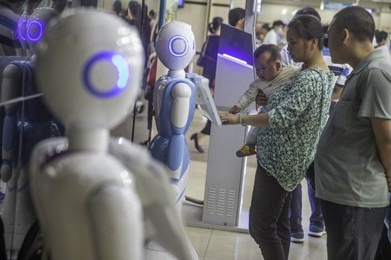 2018年4月2日,广东省第二人民医院门诊大厅,市民通过机器人查询相关就医信息。视觉中国供图(资料配图)